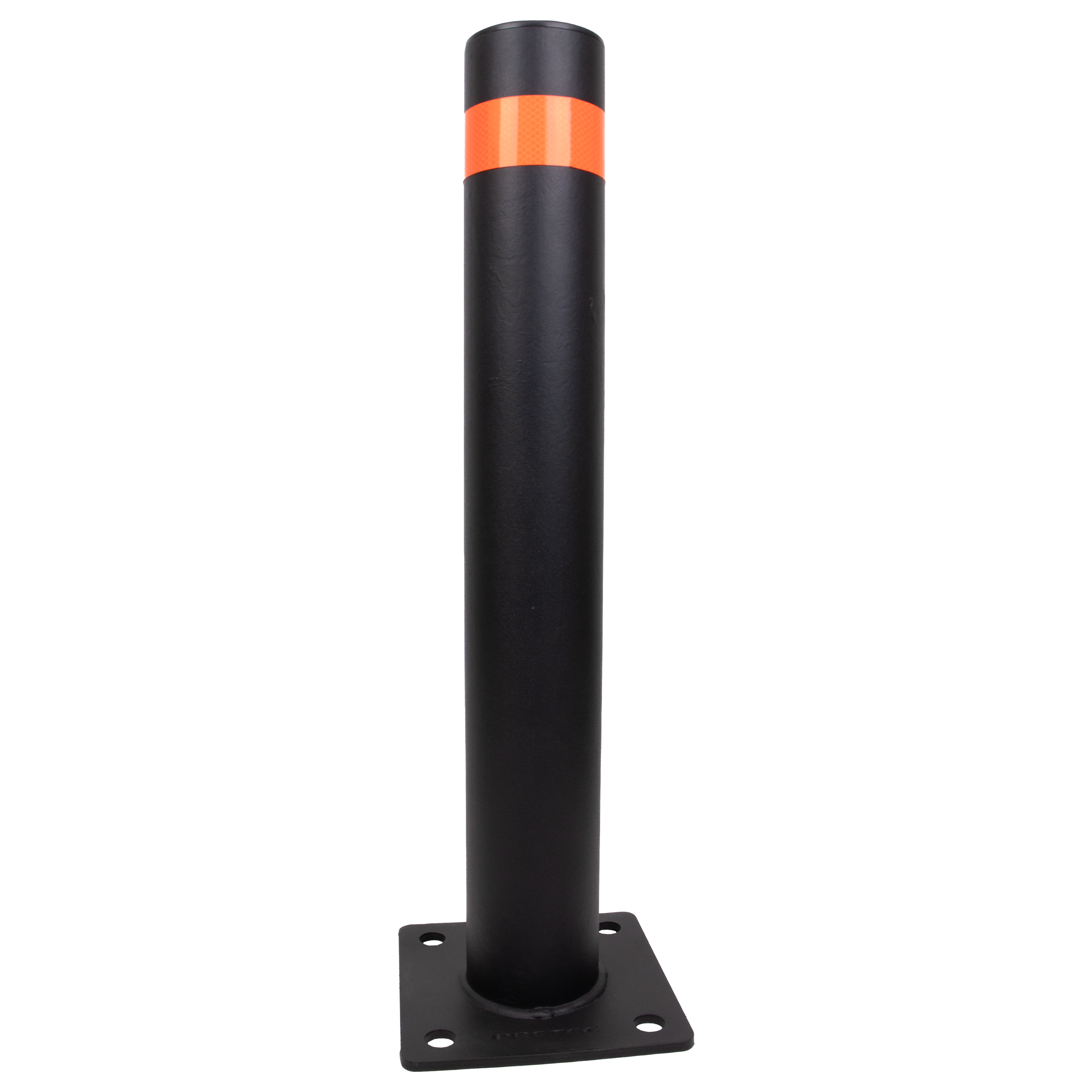 Påkörningsstolpen är tillverkad av ett Ø108 mm stålrör och har en påsvetsad fotplatta med en hålbild Ø 24mm C/C 160 mm. Höjd 750 mm.